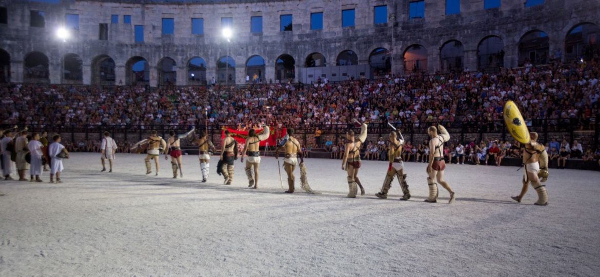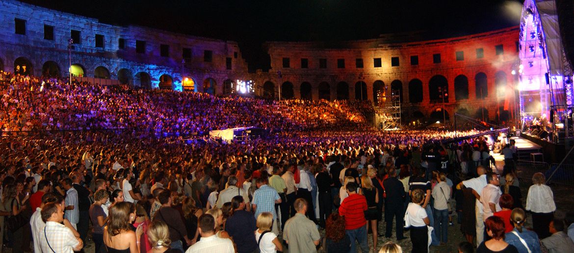 The culture of the city of Pula has been developed since the earliest times, and the great development begins with the arrival of the Romans and antiquity who give a significant boost to cultural development by building one of the most famous amphitheaters „Pula Arena“ which served to gather citizens and is still used to entertain today. The amphitheater is used for a number of cultural events such as concerts, film festival and various shows.